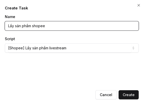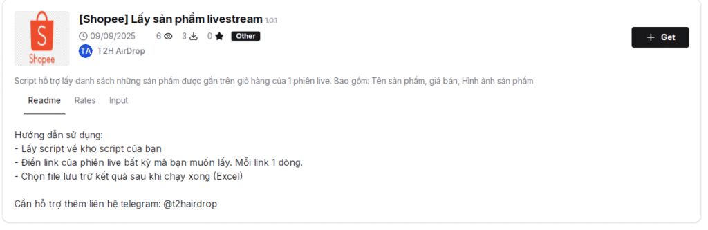 Ví dụ ở đây mình xem chi tiết script “[Shopee] Lấy sản phẩm livestream“